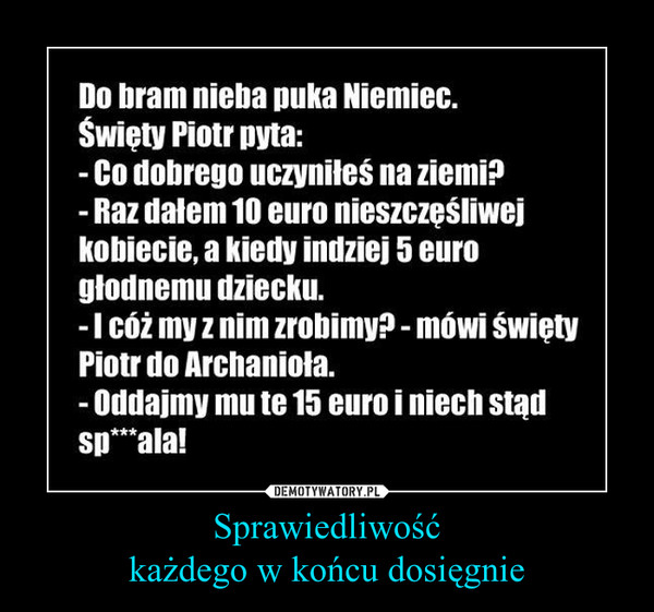 Na ławce w parku siedzi smutny facet, w ręku trzyma butelkę. Siedzi i tylko w nią patrzy. Nagle podchodzi dresiarz, siada obok, zabiera facetowi flaszkę, wypija jednym łykiem zawartość i beka potężnie.Smutny dotąd mężczyzna zaczyna płakać.- Stary, nie becz, żartowałem - mówi zakłopotany dresiarz. - Obok jest monopolowy, kupię ci nową flaszkę.- Nie o to chodzi - tłumaczy mężczyzna. - Nic mi się nie udaje. Zaspałem i spóźniłem się na bardzo ważne spotkanie. Moja firma nie podpisała kontraktu, więc szef mnie wywalił. Wychodząc z firmy zobaczyłem, że ukradli mi samochód, więc wziąłem taksówkę do domu. Kiedy taksówka odjechała, zorientowałem się, że zostawiłem w niej portfel ze wszystkimi dokumentami. A w domu co? W domu moja żona zdradza mnie z najlepszym przyjacielem! Postanowiłem więc popełnić samobójstwo. Przygotowałem sobie truciznę... i nagle przychodzi palant, który mi ją wypija!!