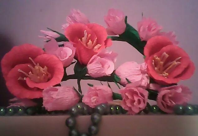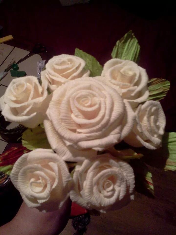 No tak, otóż robię je z krepiny, nie z bibuły. Bibuła jest za cienka i nie można z niej formować dokładnie takiego kształtu jakby się chciało. Krepina natomiast jest elastyczna i w ten sposób z jednego metra tego papieru robi się 3-5, jednocześnie możesz ją wywijać i nie potarga się, a przynajmniej nie tak łatwo...