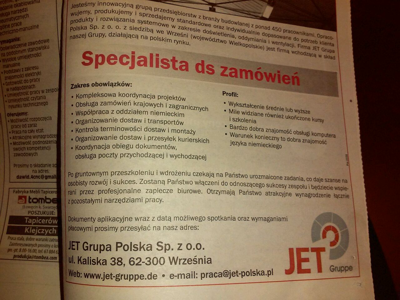 A mi taka oferta pracy koło nosa przechodzi. Rzecz jasna nie wiadomo, czy bym się tam dostała, ale szanse są. No ale nie będę jechała z Niemiec na ewentualną rozmowę kwalifikacyjną.