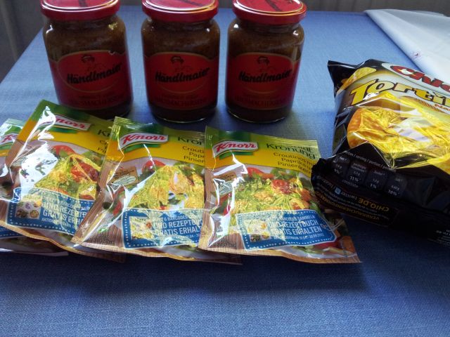 Dostałam musztardę. Myślałam, że będzie z tym problem, ale była w Edece. Do tego chipsy, które uwielbiam, a które z Polski wycofali!! No i taki dodatek do sałat, w Polsce też czegoś podobnego nie widziałam, co za skandal po prostu uważam:)