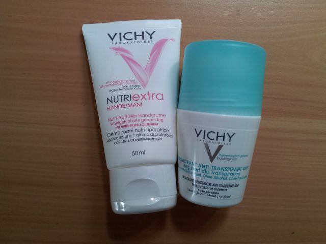 Nabyłam sobie jeszcze krem do rąk i antypespirant Vichy. Krem do rąk już kilka razy miałam i jest świetny. Antypesirant to dla mnie nowość, ale jest polecany na youtube. Mam wprawdzie niezawodny Antidral, ale jest on tak silny, że bluzki wypala. Więc chyba za dobry dla skóry też nie jest. Postanowiłam używać go tylko w gorących okresach, albo przed imprezami, a tak normalnie to inne. Ale jak nie chcecie się latem pocić, nie lubiecie tzw. nietoperzy na bluzkach i zapominacie o antypespirancie na dodatek, to polecam Wam ten Antidral. Raz w tygodniu wystarczy go użyć i paszki przez cały czas suche:) Tylko nie polecam go używać zaraz po depilacji i lepiej założyć po użyciu jakąś starą bluzkę, bo niszczy ubranie.