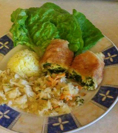 Roladka z piersi ze szpinakiem,ryz,spitzkohl gotowana ze smietana,surowka z kiszonej kapusty:)