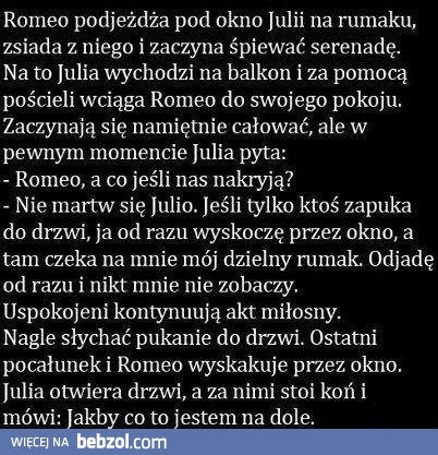 Środek nocy. Długi dzwonek do drzwi. - Kto tam? - Policja. - Ale nikogo w domu nie ma! - A kto odpowiada? - Nikt nie odpowiada. Pewnie się przesłyszeliście. - A światło dlaczego się pali? - No dobra, już gaszę.