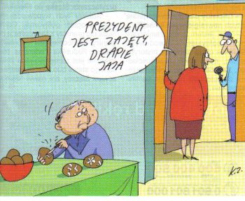 Mąż żoną w kuchni , przygotowują śniadanie . On kroi chleb, ona nastawia jajka . Nagle żona mówi do męża :