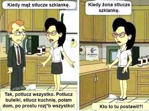 Zona zrobila wszystko tak jak chcial mąz.On patrzy na nia i mowi :