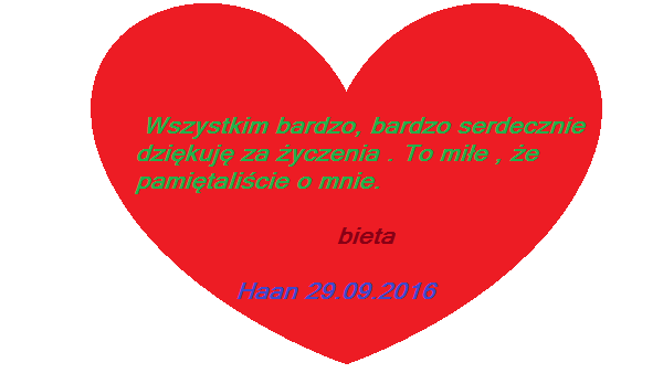 Kochanie, spoziome, ale szczere - wszystkiego dobrego. Na usprawiedliwienie - mam na głowie sobotni jubel, 16 osób, zbiegają się urodziny mojego szefa i moje, a ja jeszcze nie całkiem zaaklimatyzowana po podróży . Dziękuję! !