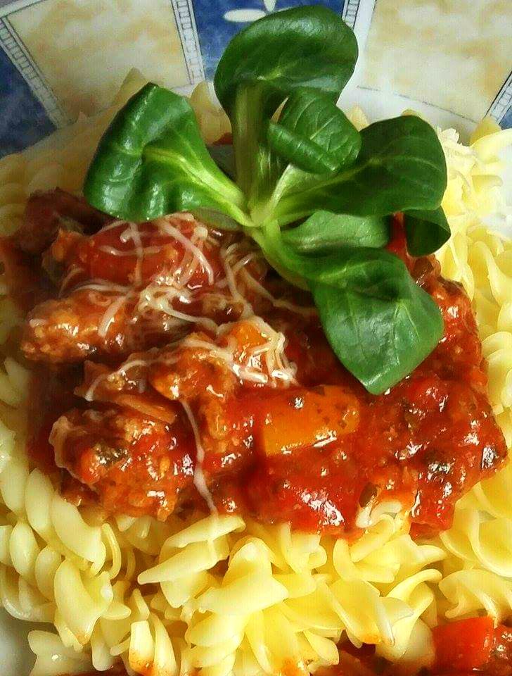miesem mielonym i sosem własnoręcznie zrobionym od podstaw.