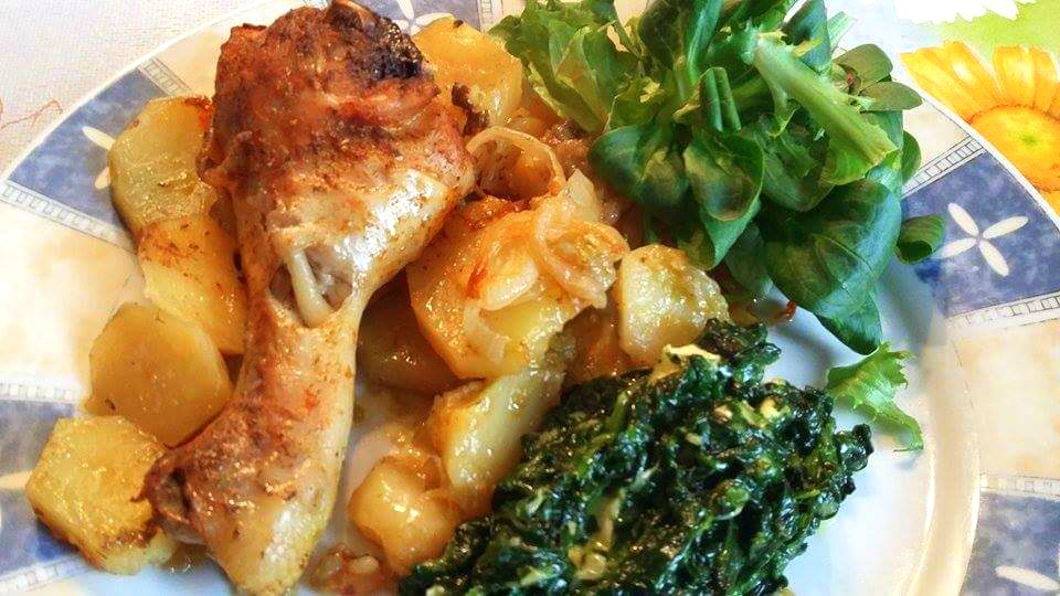 3 osoby, 6 pałeczek z kurczaka. To jest mała blaszka.