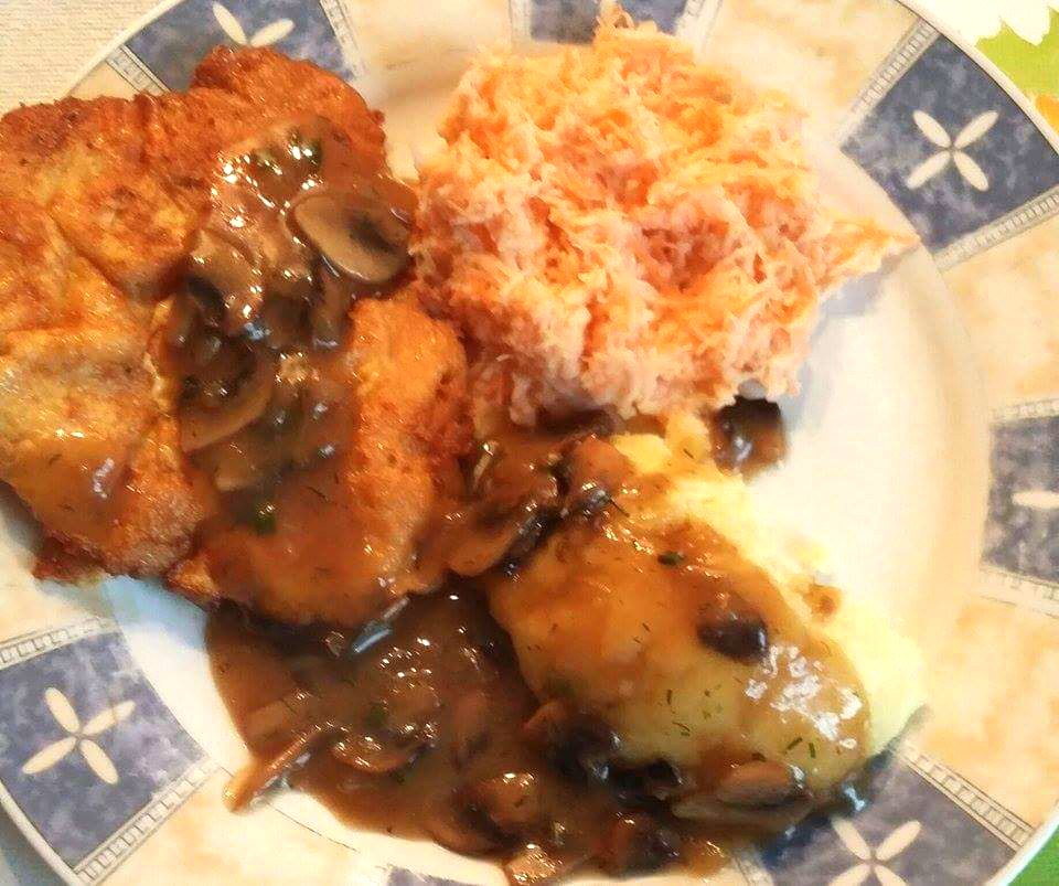 Krokiety z kaszy gryczanej z pieczarkami i żurek .
