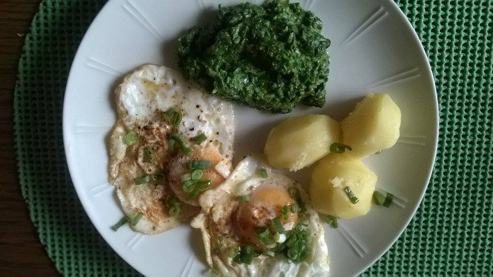 U mnie to samiuteńko , tylko zamiast ziemniaków puree zrobiłam , bo Pani je lubi . A ! i " sadzone " mniej przypieczone , bo obie wolimy takie lekko usmażone , tylko , żeby bialko sioę dorze ścięło . " Cipiorkiem " też posypałam :tanczy: