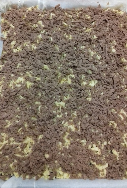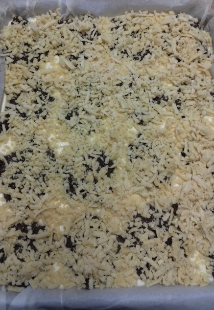 Po 2 godzinach wyciagnac jedna polowke ciasta i zetrzec na tarce bezposrednio na blache i piec na zloty kolor przez 15 do20 minut. Po ostudzeniu posypuje to ciasto 1/3 szkl. bulki tartej, na to jablka a na jablka scieram druga polowke ciasta z lodowki, piec godzine w 180 stopni. Jablka kupuje w tych wiekszych sloikach a dodaje cynamon i pol szk. cukru i fertig.