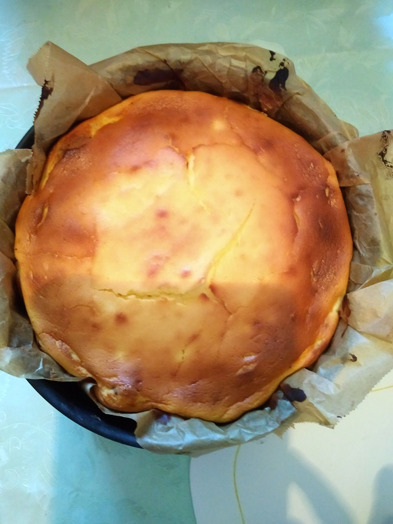 Jak widać na załączonym obrazku, sernik nie odwrócił się :) Jest jednak sukces, albowiem zakalca nie stwierdziłam. Dolna warstwa pięknie upieczona, ale dość sucha. Górna warstwa serowa, niewiele ma wspolnego z sernikiem, ale to zapewne wina nieodpowiedniego sera.  Nie opadło, co też jest wielkim sukcesem. W smaku ciasto nie przypomina sernika. Raczej proszkowe ciasto z serowym dodatkiem.No, to teraz wystarczy mi tych eksperymentów na kolejne 3 lata z okładem :D