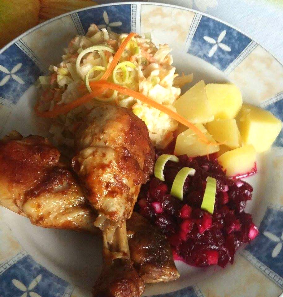 U nas dzisiaj gulasz świnięcy, kartofell knodel i buraczki na ciepło.