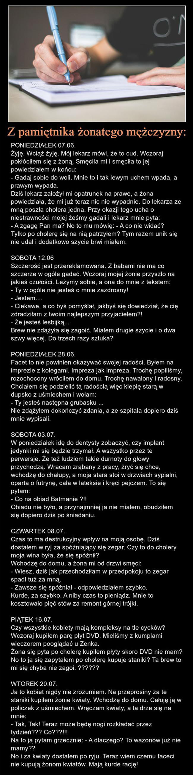 Wraca pijany mąż późną nocą do domu, a w korytarzu czeka na niego żona z wałkiem i teściowa z patelnią.