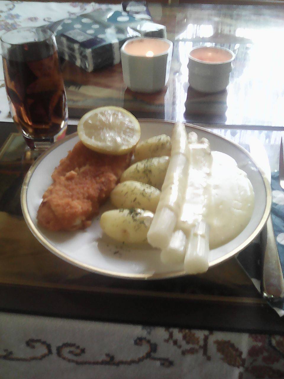 Kieszonki schabowe faszerowane pieczarkami, papryką i serem, ziemniaki i. .....sałata, jeszcze jedna ogromna została. Jutro ją skończymy i przerwa, mam już przesyt.