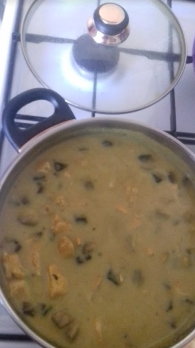 Gulasz z piersi kurczaka, ziemniaki,mizeria. Bylo dobre :mniam: