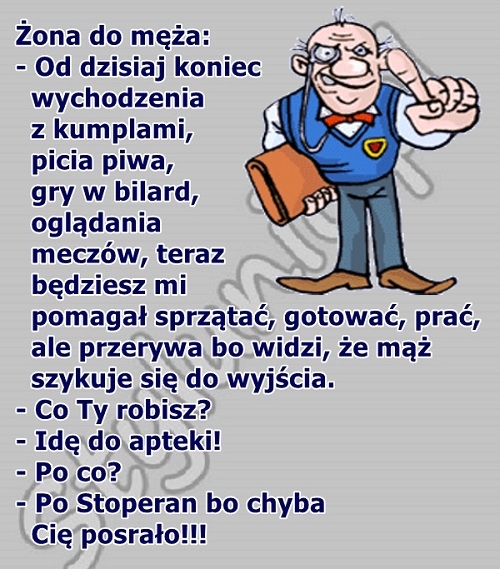- Widzicie, bierzemy sklanecke wina... no dwie... góra cy i wlewamy do garnka. Później bierzemy sklanecke piwa... no dwie... góra cy i wlewamy do tego samego garnka. Następnie sklanecke wódecki... dwie... no góra cy i wlewamy to do tego samego garnecka. Na koniec bierzemy sklanecke koniacku... no dwie... góra cy i wlewamy do garnka. Garnek stawiamy na ogniu i miesając grzejemy cas jakiś. Później nalewamy i pijemy sklanecke... dwie... no góra cy. Po wypiciu wstajemy... robimy krocek... dwa... no góra cy!