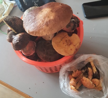 Pierwsze, zebrane w godzinę przez żonę. Nie przewidziała, że będą grzyby u nas w lesie, więc nie miała większego kosza.