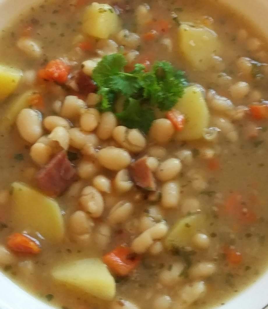 Ja dziś wegetariańsko i niewyszukanie - curry z kalafiora i ziemniaków, a szef równie mało wykwintnie i wcale nie wegetariańsko - Leberkaese z jajem sadzonym i pieczywem.