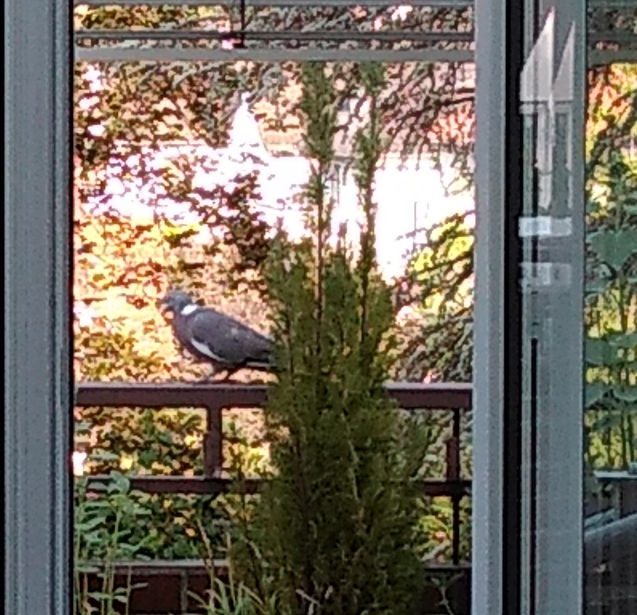 Dziś dzień sprzątania był to się spocilam,na zakupach byłam to się spocilam w czasie gotowania i jedzenia też.Pdp.też spocona i ustaliłysmy zasadę,każda się poci w inną stronę :hihi:Oczywiście to żart bo pocimy się pachnąco.:-) Ale jest szansa że jutro spadnie deszcz i w niedzielę też .Wystawiłam miski z wodą dla ptaszyny ,piją i kąpią się w ogrodzie a orzeszki dla wiewiórki tłusty gołąb podbiera, dziś mu fote strzeliłam jak se paradował po poręczy tarasu :karmic ptaki: