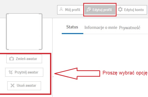 Na profilu proszę kliknąć w "edycja profilu", następnie wybrać odpowiednią opcję, widoczną pod awatarem.
