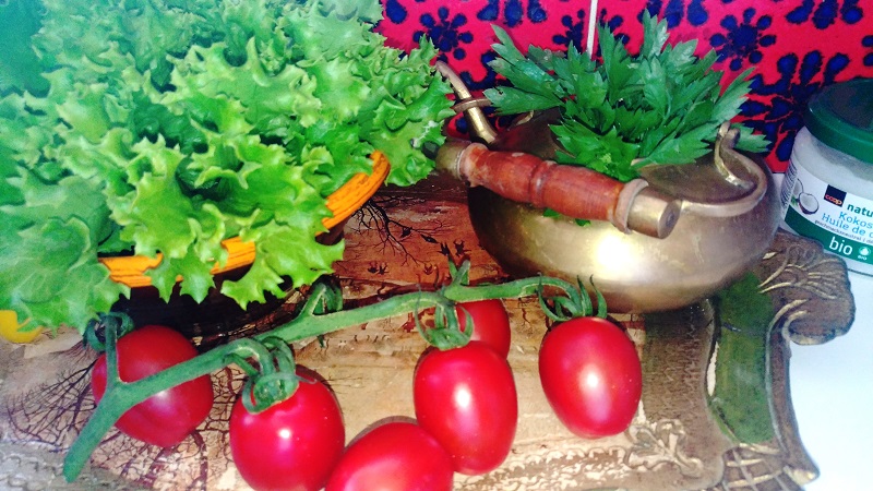 Dorzuce endywię prosto z ogródka-pomidory jeszcze kupne :)