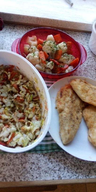 Na obiad robię sobie co chcę (tu jest obiadokolacja), nikt mi nie zagląda w talerz. Ale jednej osobie się nie chce jakoś specjalnie gotować, to często są to np. kanapki. Zwłaszcza, jak świeży chleb przyniosę, i są jakieś np. szynki szwarcwaldzkie, parmeńskie i tym podobne, które lubię ja i on-, to mogę zamienić obiad z kolacją.