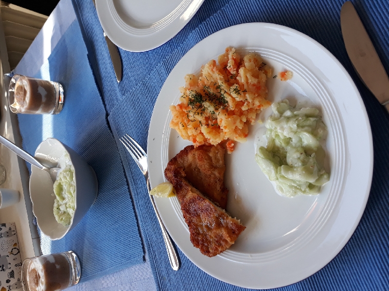 . Ciekawa jestem, czy przypomina to, co Tina gotowała. Wiedziałam że dużo tego wyjdzie, to zaprosiłam siostrę pedepci na obiad, najadłyśmy się a i tak dla nas na jutro zostało!. A użyłam tylko 3 plastry schabu. Deser to nadal jogurt, dzisiaj z musem z ananasa, a że święto i w daniu głównym kalorii dużo, to pomyślałam, że jeszcze trochę nie zaszkodzi i posypałam startą, gorzką czekoladą. Święto to święto