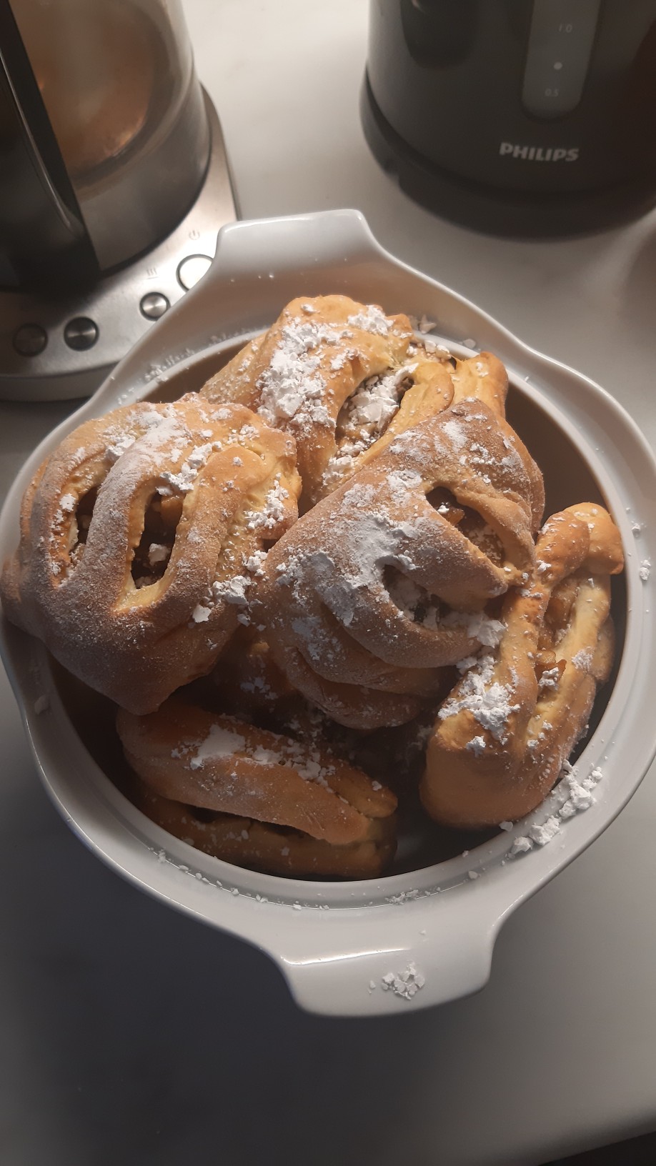 Dziadek powrócił, zrobiłam bułeczki drożdżowe z jabłkami i rodzynkami, powitał go świeży zapach ciasta domowego. No cóż, zupka rosołek z kluseczkami danymi będzie musiała poczekać na kolację .