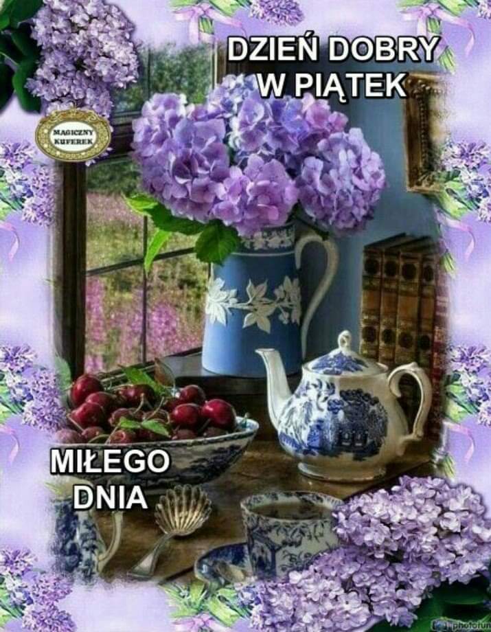 Dzień dobry w piątek, weekendu początek. Jeszcze przede mną  3 takie weekendy i wyruszam na urlop. Ale to jeszcze  trochę czasu więc muszę popracować jeszcze. Dziś podjade do sklepu i dokupie kilka rzeczy bo w lodowce zaczyna się robić pusto. Dla Was spokojnego i słonecznego dnia i smacznej kawki.