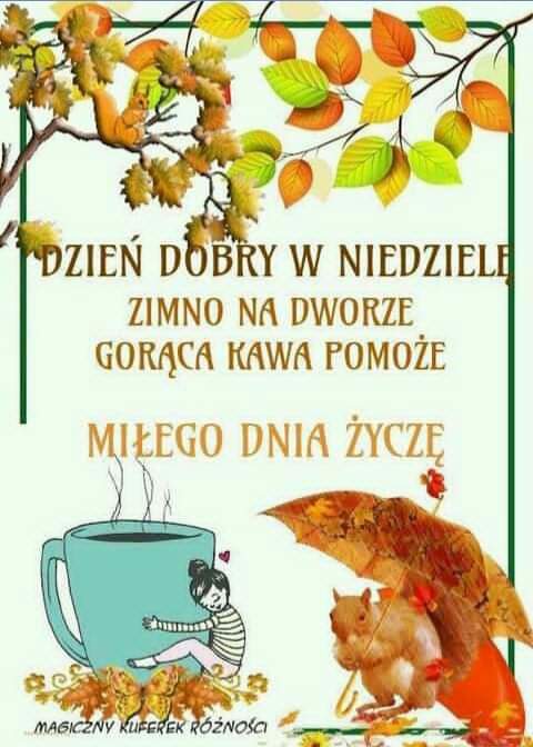 Witam serdecznie.  Wszystkim życzę spokojnej, bezstresowej niedzieli  i pięknej, już jesiennej pogody, niestety.