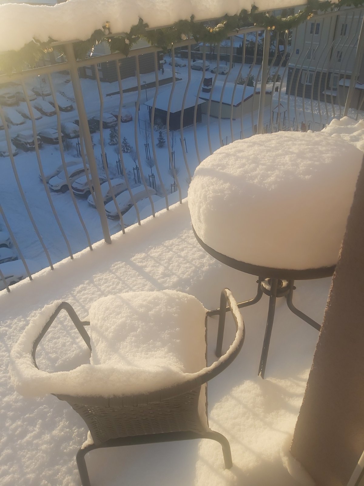 Weekend zapowiada się więc bardzo rodzinnie. Niebo cieszy się razem z nami,bo słońce pięknie świeci,nie wieje i przestało w końcu sypać śniegiem. Póki co, to mamy jego wystarczająco dużo,co widać na fotce zrobionej dzisiaj rano