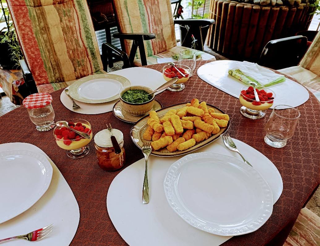 U mnie bez miaska dzis.Pieczone krokiety,wirsing na cieplo i budyń waniliowy z ?.
