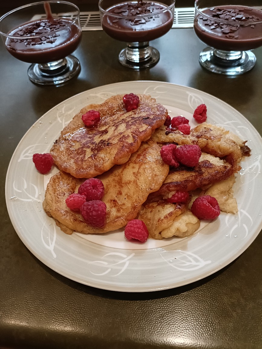 A ja sobie dziś zapodalam placuszki bananowe a dla Seniorów Reibekuchen z musem jabłkowym i rodzynkami.Na deser pudding czekoladowy.