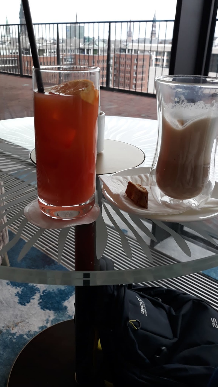 Pisałam już rano,że zachłanna jestem,latte nie wystarczyło,jeszcze campari orange sobie dobrałam. A co,miejsce ładne,kawiarenka z widokiem prawie na dachu Elbfilharmonii ,chwilo trwaj,chciałoby się powiedzieć :-)
