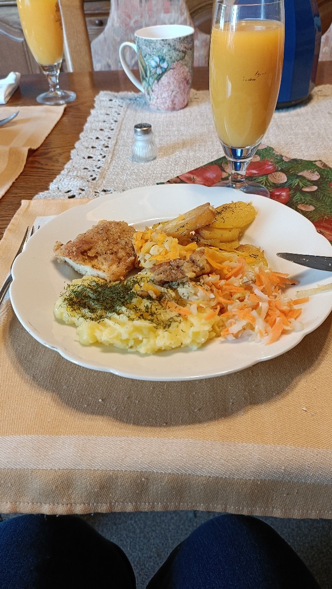 Powtorka z wczoraj,bo zostało ??Szpecle smażone z cebulką i że bekonem plus CD buraczki że słoika bo też zostały. ?