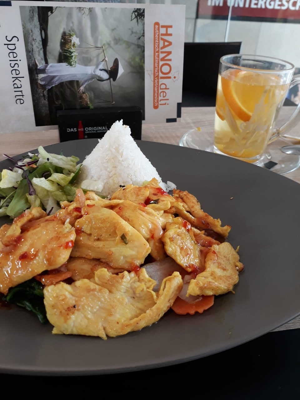 A ja dzisiaj,korzystając z wolnego,poszłam sobie do restauracji wietnamskiej:-). Byłam już raz i bardzo mi smakowało więc powtórzyłam. Bufetu nie mają,tylko dania z karty,na zamówienie na miejscu,albo na wynos. Jakby była piękna pogoda,to z chytrości wzięłabym na wynos bo 2 euro taniej niż na miejscu:lol1:. Dzisiaj zaserwowałam sobie kurczaka w sosie chili słodko-pikantnym na warzywach krótko smażonych w woku i ryż do tego. Trochę zmokłam to dla rozgrzewki herbatka ze świeżego imbiru z pomarańczą i miodem. Zrobiłam fotki telefonem,ale ten nie chce z internetem współpracować i nie mogę się zalogować do opiekunkowa:-(. Poproszę koleżankę może mi pomoże:-),żeby nie było ,że tylko tak gadam?.Rachunku nie sfotografowałam więc nie wstawię :-)