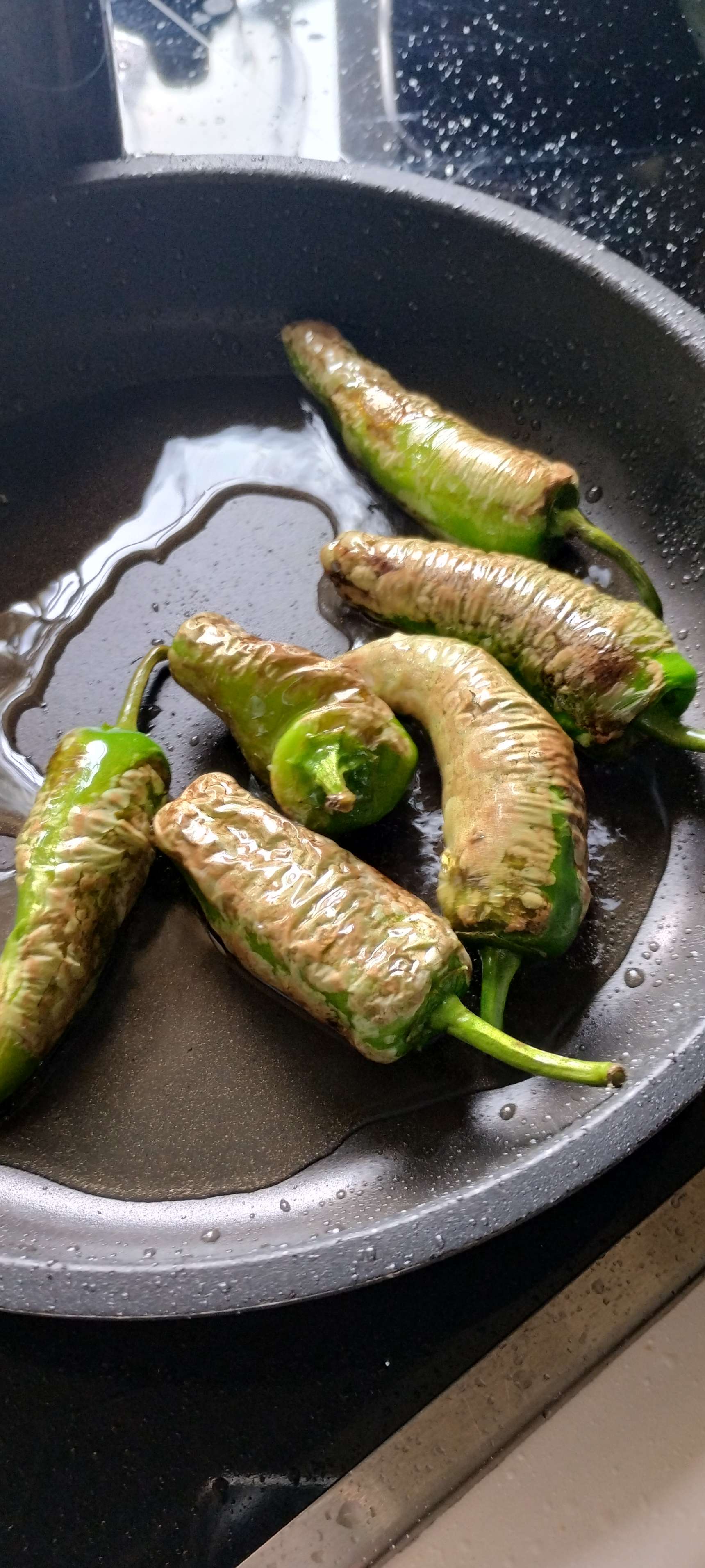 Wcześniej wszystko sobie pokroiłam,zamarynowałam mięsko,więc wieczorem gotowanie zajęło mi tyle czasu,ile ryż się gotował. Miałam kilka papryczek,tych zielonych bratpaprika,to ysmazylam je króciutko, pospałam grubą solą i odrzuciłam każdemu na talerz. Talerze wyglądały kolorowo i apetycznie