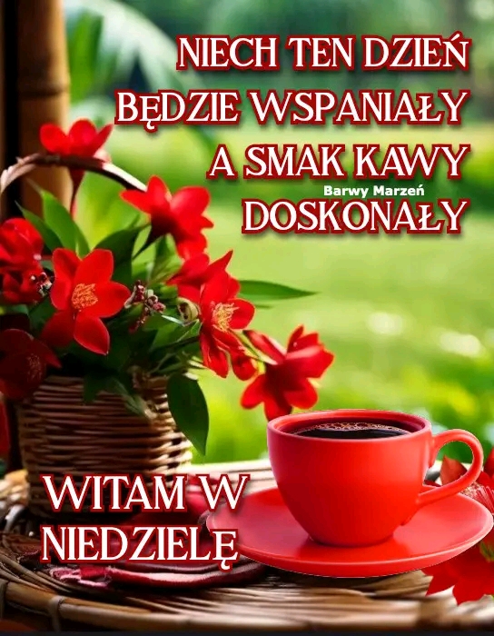 Witam niedzielnie. Kawę już sobie sparzyłam,ale ile razy puknęłam się w ścianę,to tylko ja wiem. Latarka mi wysiadła i musiałam torować sobie drogę po omacku. Grunt,ze już z powrotem w łóżku.I tak prawie do ósmej.Wszystkim życzę miłej niedzieli.