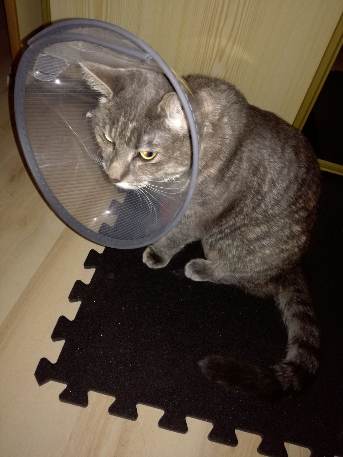 Miała operację o 10.30,od godz 12 do 18 leżała pod kroplowką. Weterynarz zadzwonił i syn po nią pojechał. Już powolutku chodzi po domku i ma założony kołnierz. Do niedzieli nic nie może jeść i pić,tylko codziennie syn będzie z nią jeździł na kroplowki. Do południa moja mama będzie przychodzić do mojego mieszkania i się opiekować choruszką. Wszystko się dobrze skończyło,dopiero od niedzieli będzie jadła i nabierać sił i ciała.