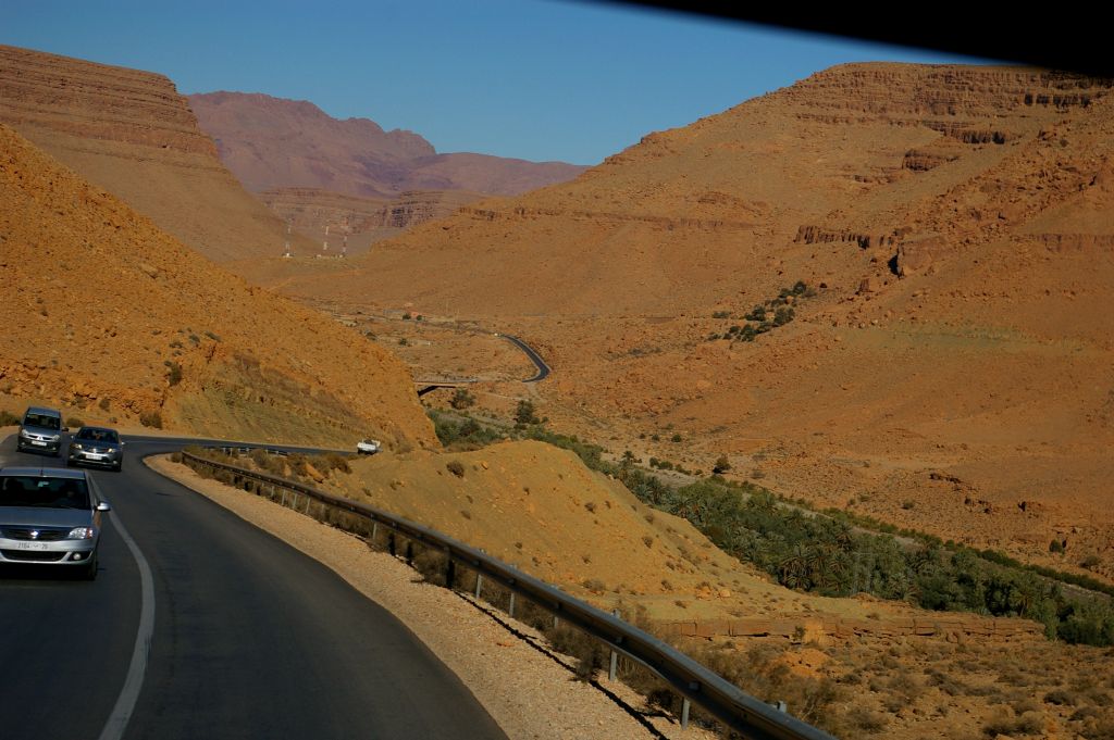 Po śniadaniu mieliśmy chwilę na obmycie się, po czym zapakowano nas do minibusa i pojechaliśmy do Al.-Rajsani na autobus do Fezu. Podróż była dosyć wesoła – kierował czarnoksiężnik w galibiji, obok inny facet w takim samym stroju, na kolejnym siedzeniu troje nastolatków jadących do szkoły i na końcu my. W radio leciał arabski pop, na przedniej szybie naklejone były dwie palmy, bus był stary i rozklekotany i tak jechaliśmy przez Saharę. Jak w filmach.