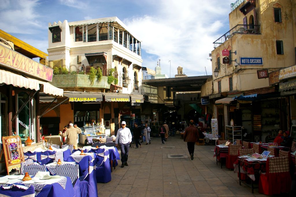 Podróż do Fezu trwała od 10.00 do 20.00, ale nie była męcząca. Podróżowanie w Maroko jest przyjemne. Średnio co 1,5-2 godziny są przystanki. Kierowca zawsze zatrzymuje się w centralnym punkcie miasta lub przy jakimś skupisku restauracji i każda przerwa trwa pół godziny. Jest więc dosyć czasu, żeby się najeść, wypić coś, a nawet przejść trochę po miasteczku. Krótko przed odjazdem kierowca odpala znowu autobus i to jest sygnał, że powoli trzeba się zbierać. Ale nie jest to jedyny sygnał. Następuje jeszcze potrąbywanie – najpierw jeden sygnał, za 2-3 minuty drugi i za trzecim już się jedzie. Niemal jak w teatrze:) No i kierowcy w państwowych firmach liczą pasażerów, a w prywatnych to mają turystów na oku i zwracają uwagę, czy już wrócili.