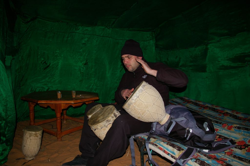 Strasznie ta pustynia nas wymęczyła. Całe szczęście jesteśmy już w Fezie i tutaj na spokojnie 2 dni spędzimy. Wczoraj wieczorem na Saharze poobserwowaliśmy gwiazdy, były niesamowite, tylu gwiazd i tak blisko nas jeszcze w życiu nie widziałam. Dobrze było widać Drogę Mleczną, ale strasznie zimno było, wiało, więc szybko ułożyliśmy się do snu. Berber naprzynosił nam kocy, zamknął nas (kocem) w namiocie i zostaliśmy sami. Trochę to trwało, zanim troszeczkę tylko się rozgrzaliśmy, no ale w końcu zasnęliśmy. Jednak w nocy za bardzo nie mogliśmy się wiercić, bo się zaraz zimno robiło – tylko leżenie na swoim, wygrzanym miejscu, wchodziło w grę.