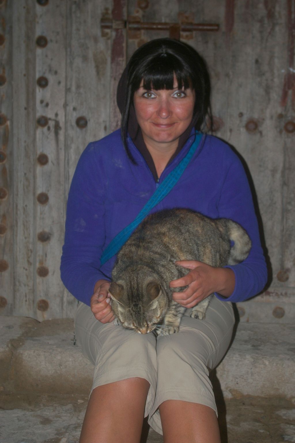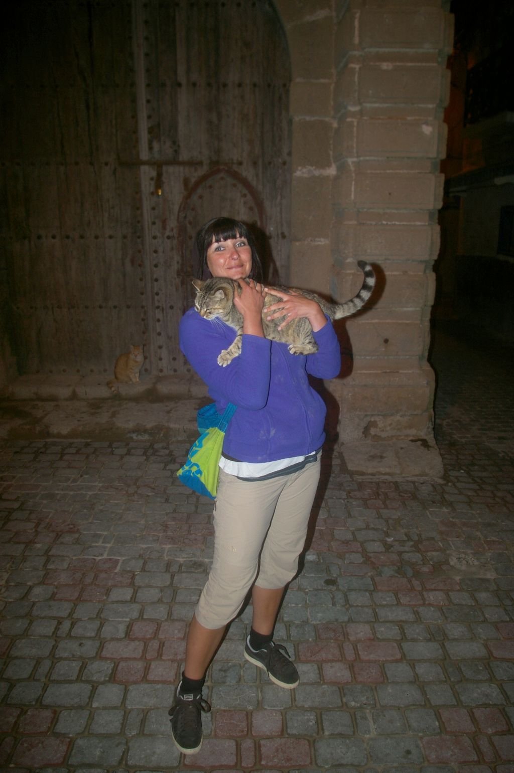 W drodze powrotnej bawiłam się z takim wielkim, wypasionym kotem. Koty tutaj są mocno wykarmione i łaszą się. Posiedzieliśmy z kotami w bramie, pobawiliśmy się robieniem zdjęć w niekorzystnych warunkach, bez statywu. Wyjątkowo klimatyczna nasza uliczka nocą jest. Dobrze oświetlona i wszystko w kolorze piaskowca. Chciałam zabrać kota do pokoju, ale Artur nie chciał :(