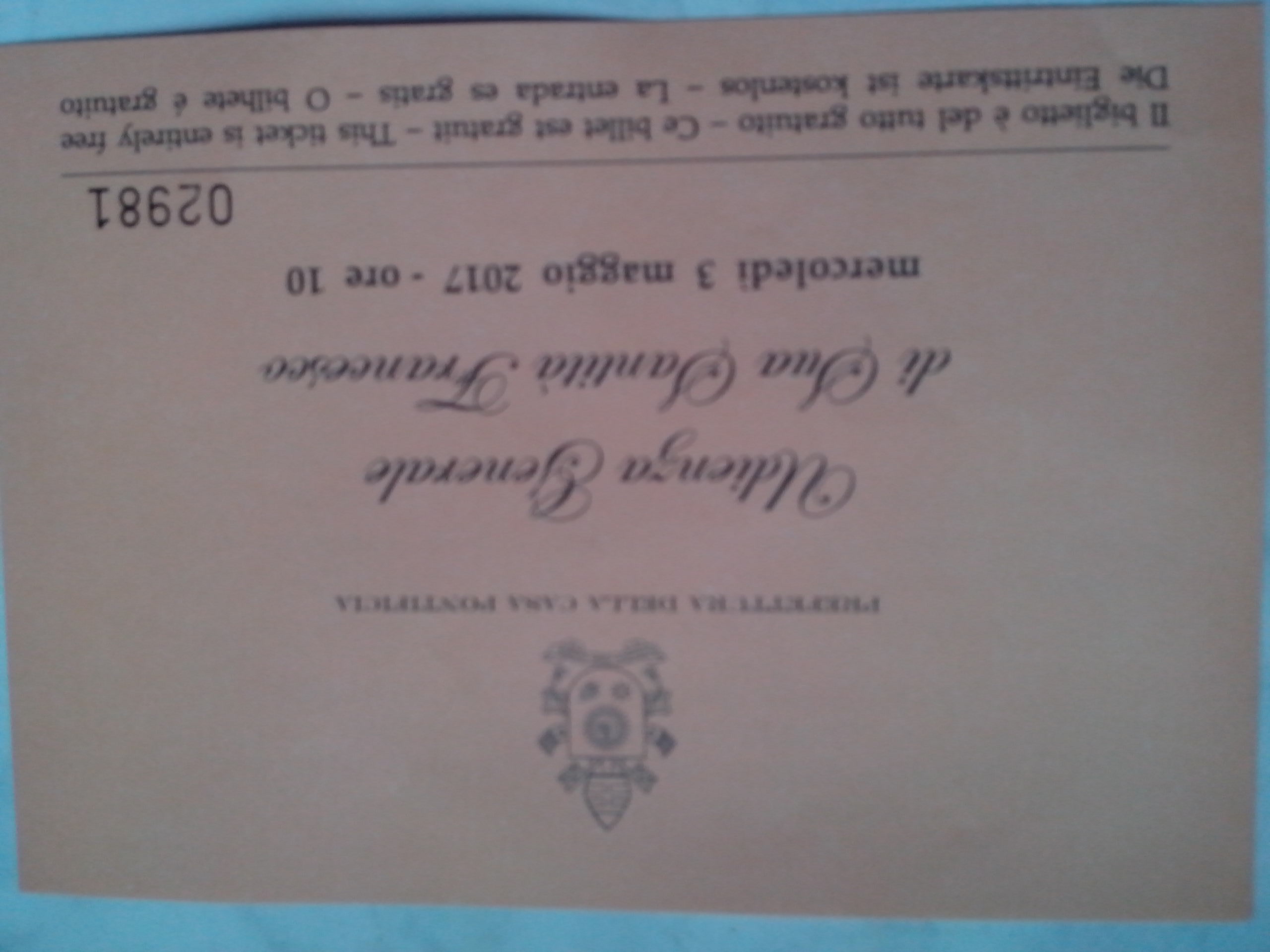 To pamiatka z audiencji generalnej, na ktorej bylam 3. maja.Na odwrotnej stronie jest "Ojcze nasz" po lacinie, ktory jest spiewany na zakonczenie przez wszystkich. W tym dniu tez zanioslo nas na cmentarz zolnierzy polskich(MC), gdzie zlozylismy bialo-czerwone kwiaty i uszyta przez kolezanke flage. Odspiewalismy hymn a wieczorem wypilismy zdrowie ojczyzny:-)