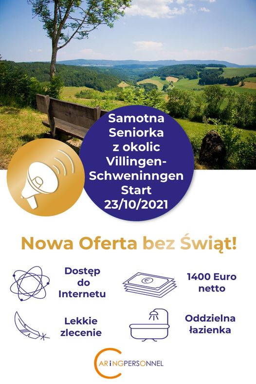 - NOWE ZLECENIE BEZ ŚWIĄT/SAMOTNA SENIORKA/OKOLICE VILLINGEN-SCHWENNINGEN/START 23.10.2021 DO 18.12.20