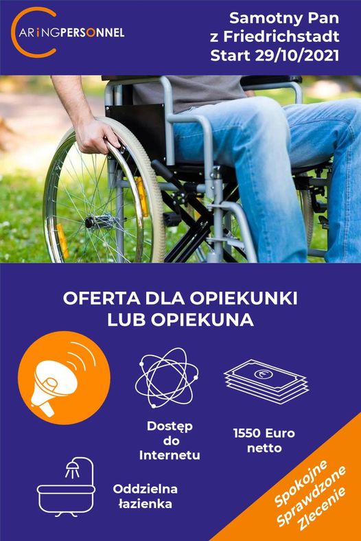 - SPRAWDZONE ZLECENIE/OPIEKUNKA LUB OPIEKUN DO PODOPIECZNEGO MIESZKAJĄCEGO W FRIEDRICHSTADT/29.10+PREM