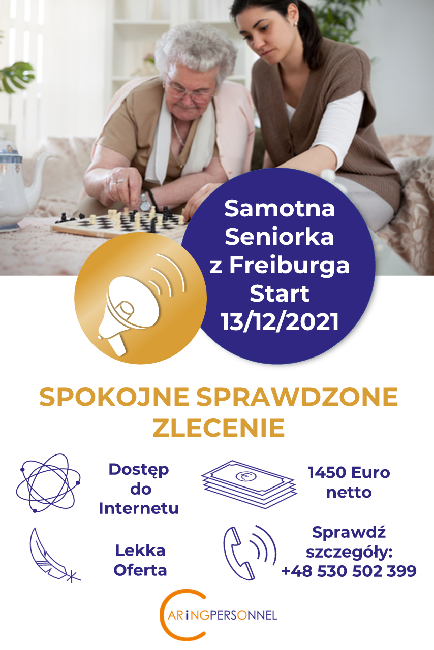 - SPRAWDZONE ZLECENIE/SAMOTNA SENIORKA/FREIBURG/START 13.12.2021/1450 Euro + BONUS ŚWIĄTECZNY DO 500 E