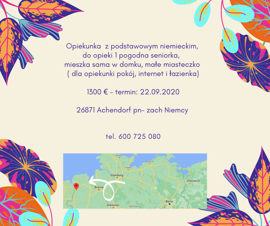 Szukam opiekunki z podstawową + znajomością j. Niemieckiego.