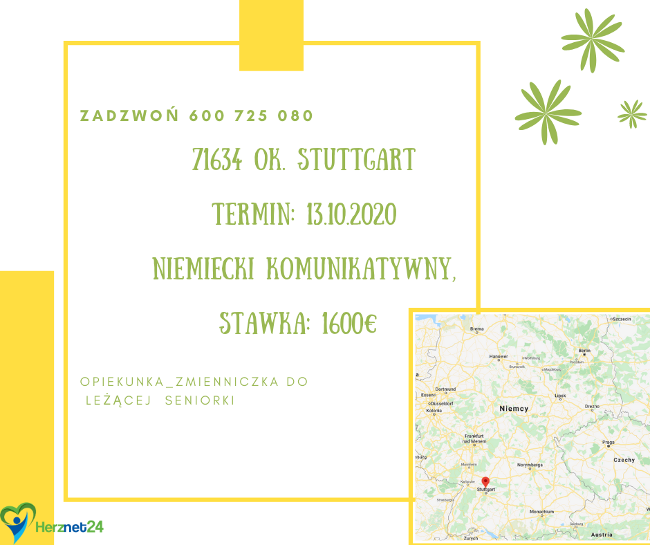 Wymagania: Szukam opiekunki ze znajomością j. niemieckiego na poziomie komunikatywnym plus, os. niepaląca.